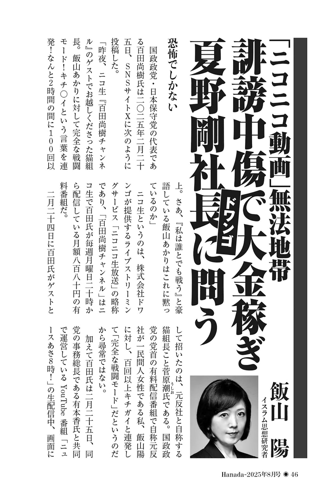 ページ数:10ページ(PDF)掲載号:月刊Hanada2025年8月号