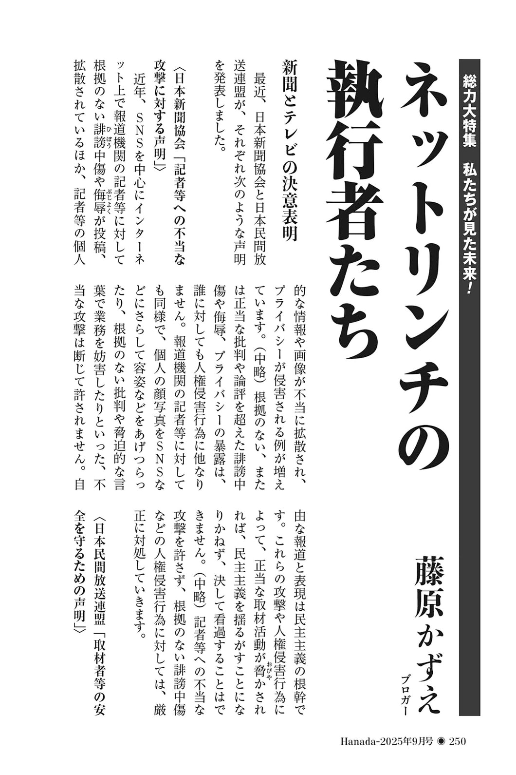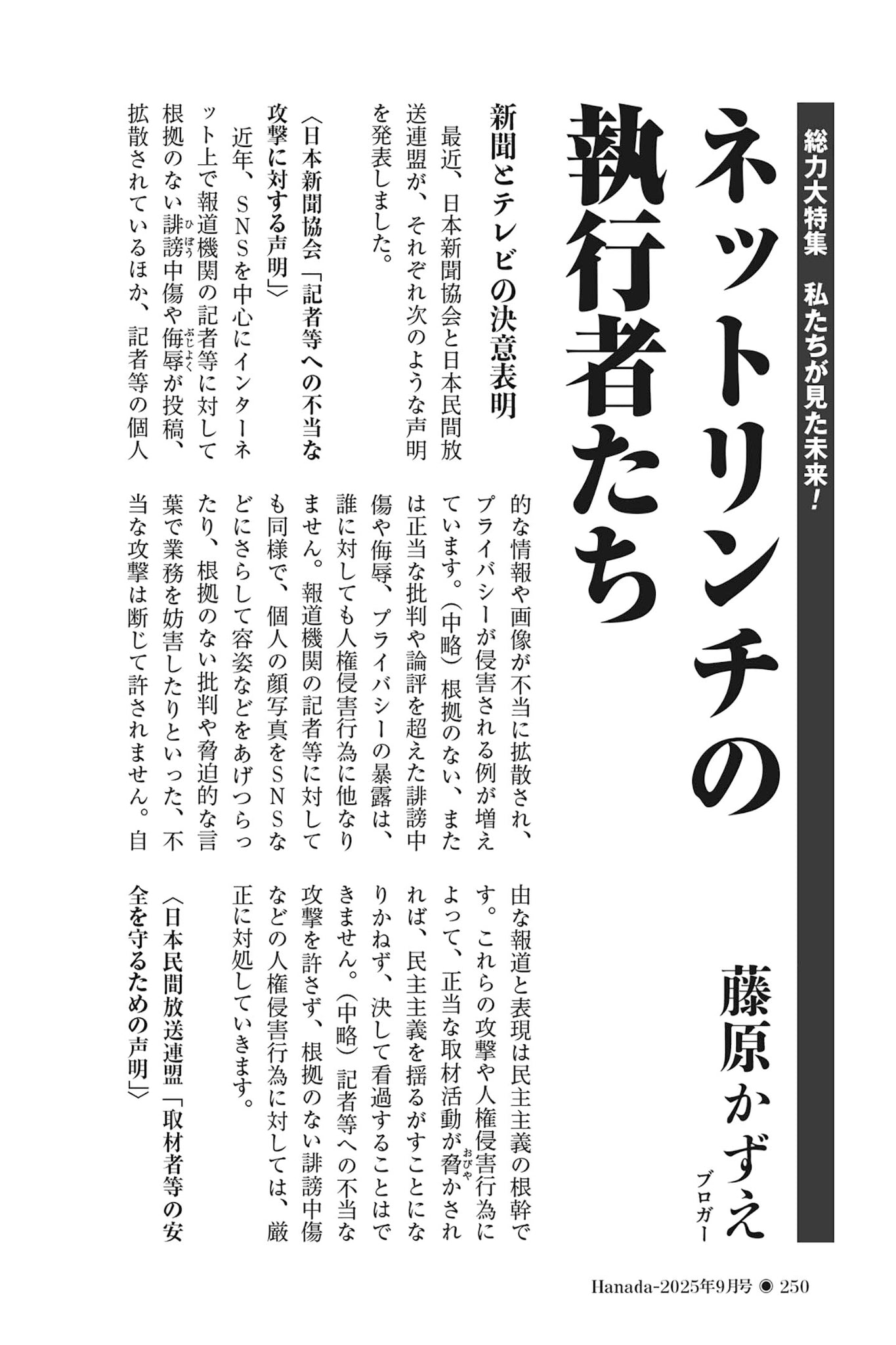 ページ数:10ページ(PDF)掲載号:月刊Hanada2025年9月号